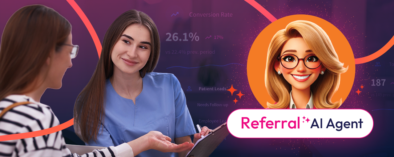 - Referrals get asked from patients, partners, and your own team—without anyone having to remember. Every patient, partner, and employee gets asked automatically, personalized to each person based on how they engage with your practice. Patients refer patients. Partners refer cases. Employees refer families. Word of mouth becomes something your practice generates systematically. Your team stays focused on the chair. Your Referral ✨ AI Agent handles the ask.